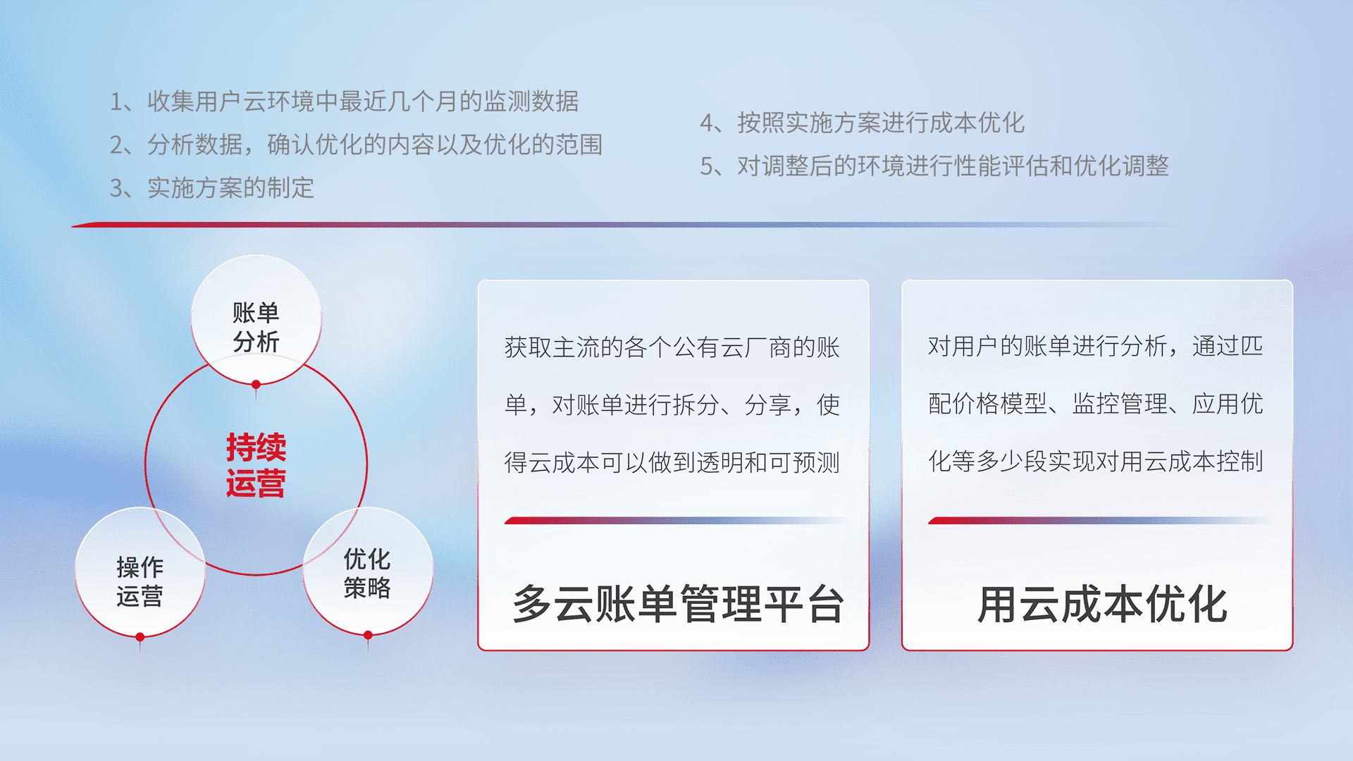 监控业务系统资源开销,,对资源的消耗精确计量,,,实现费用的透明化管理,,,不断提升资源使用率,,调整资源购买方式,,降低资源费用成本,,用云成本可预测、、用云费用可优化,,,,云资源配额有据可依。。。